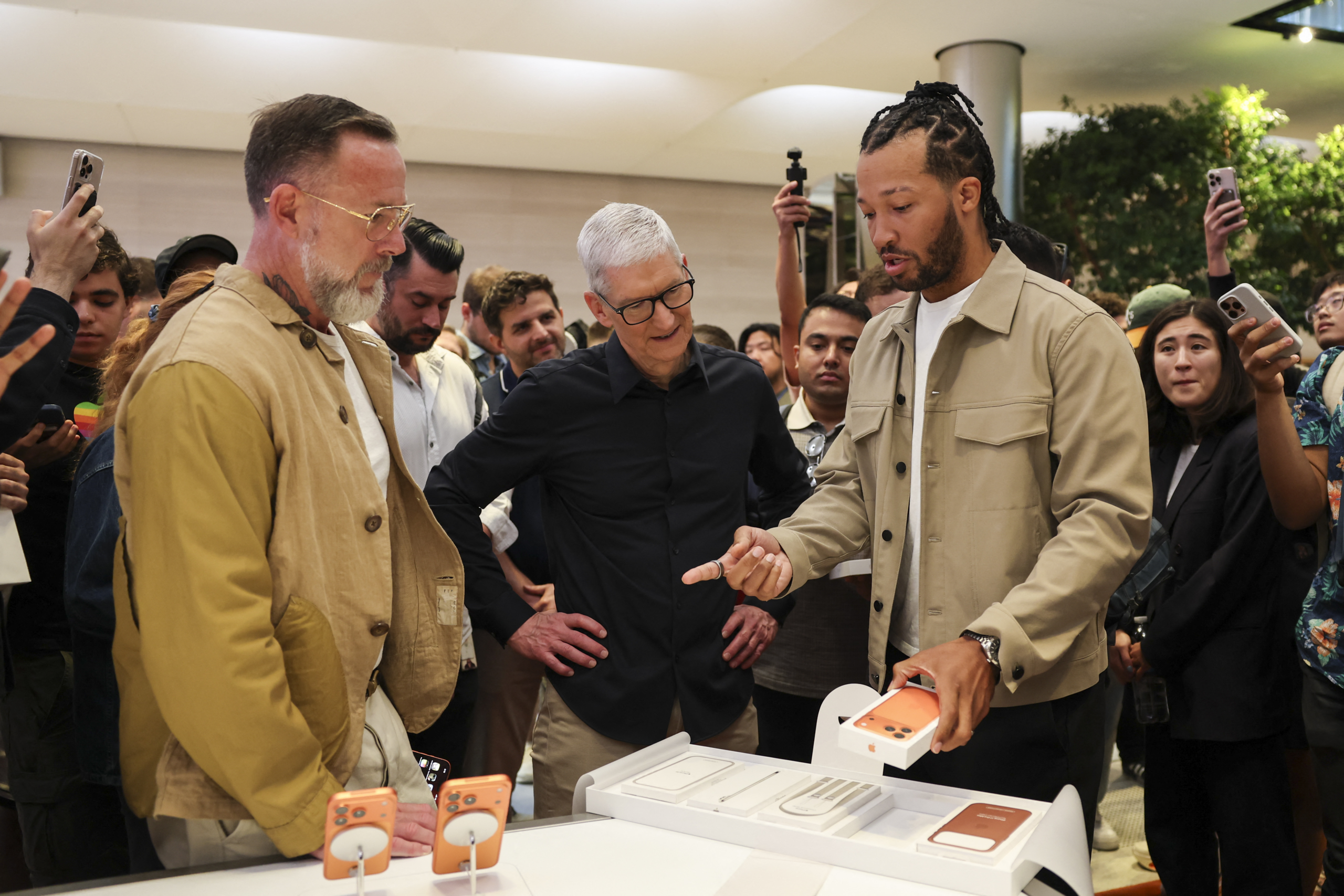 Cook even signed the back of a customer’s brand-new phone.