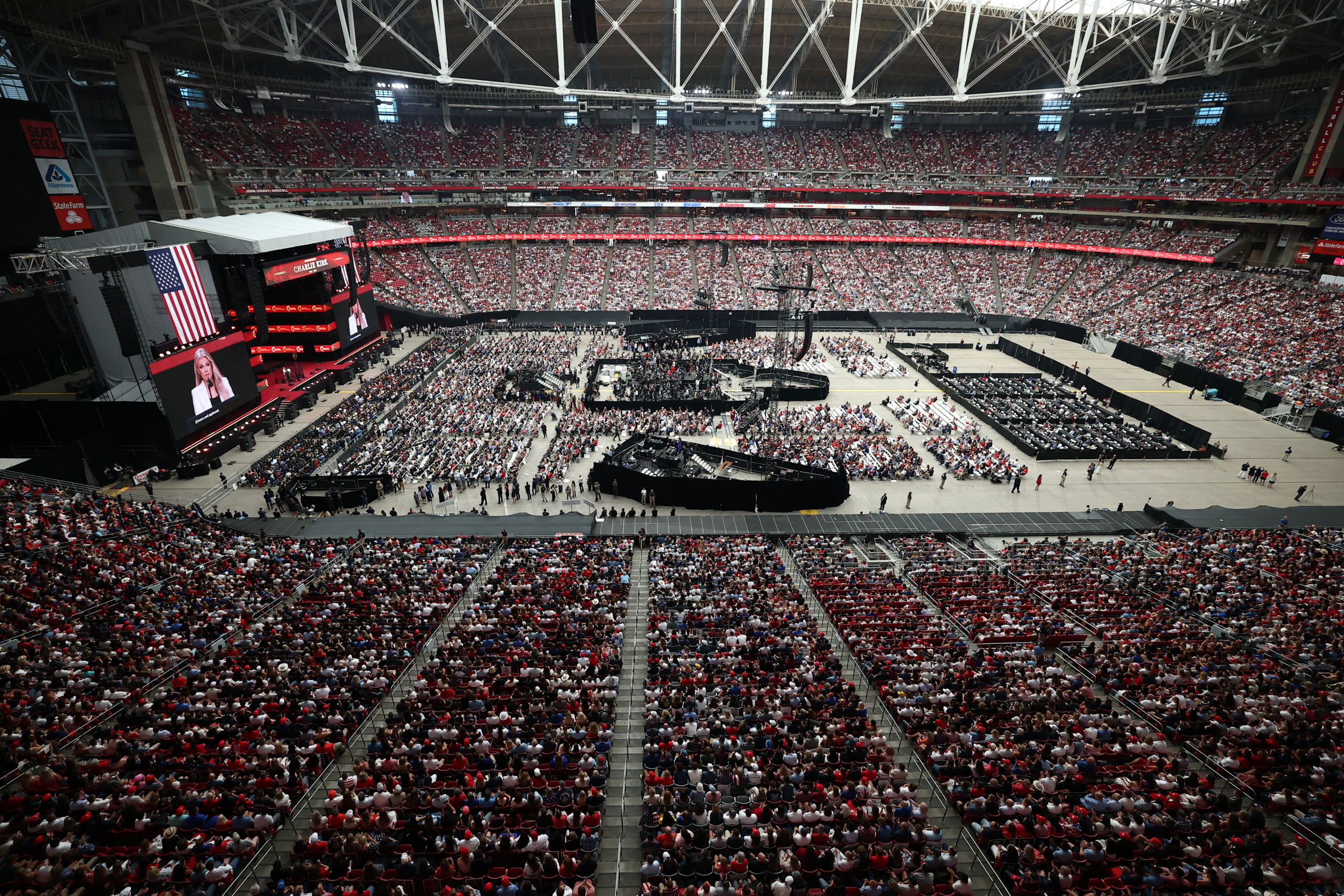 The Glendale memorial, held at State Farm Stadium, ran more than five hours and featured tributes, worship music and a eulogy from President Trump.