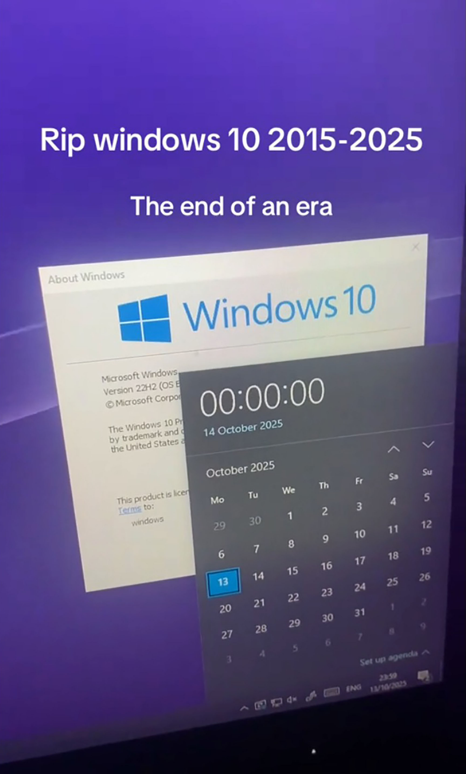 “Doesn’t mean I’m gonna stop using windows 10 lmao,” said another in a heartfelt o-bit-uary. “It’s just the end of support for its security. I think I’ll be fine lmfao. i will use windows 10 until it either forces me off or until i die.”