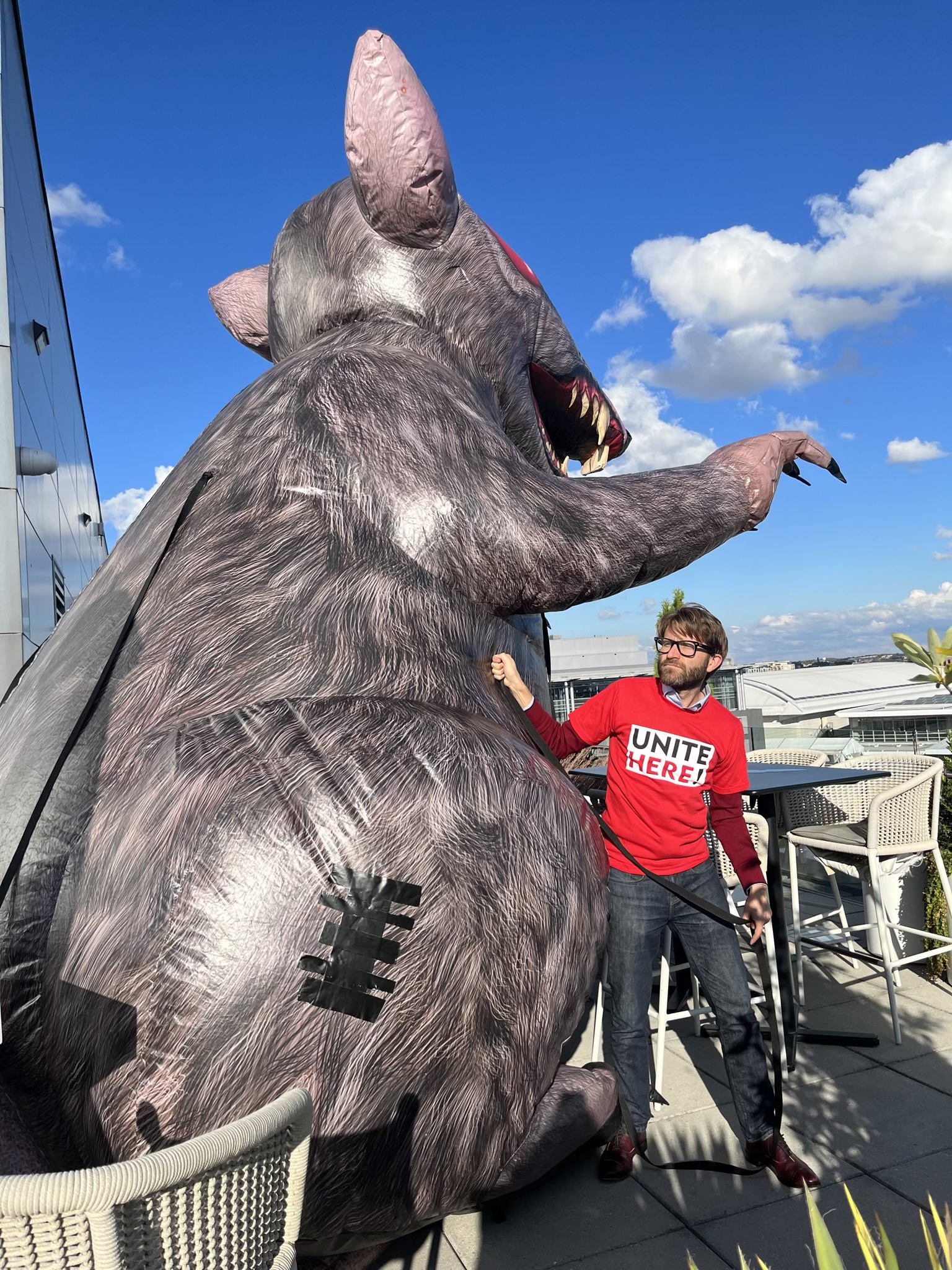 Late Thursday afternoon, the rat — which the union said cost $7,000 — was inflated to its full height of 12 feet. It wasn’t immediately clear, however, whether the rat would be able to stay inflated.
