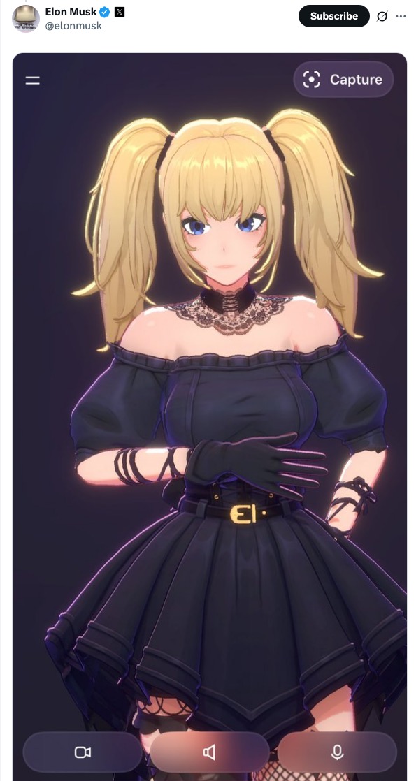 A New York Times report last month said “Ani” and her male counterpart, “Valentine,” were marketed as “sexy AI companions” and that Musk has been urging users to try them, even posting clips of the female bot dancing in lingerie.