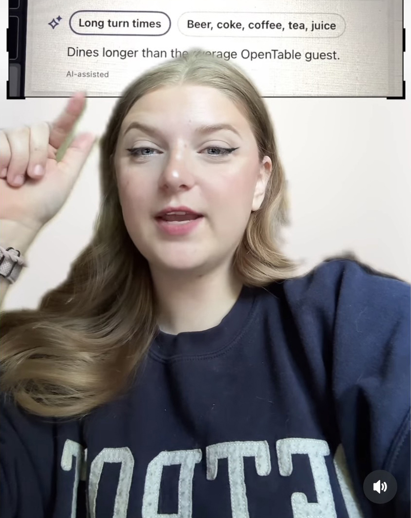 OpenTable’s AI feature will also flag if a guest is historically a “high spender,” Menter flagged in a video. eatingoutaustin/ Instagram