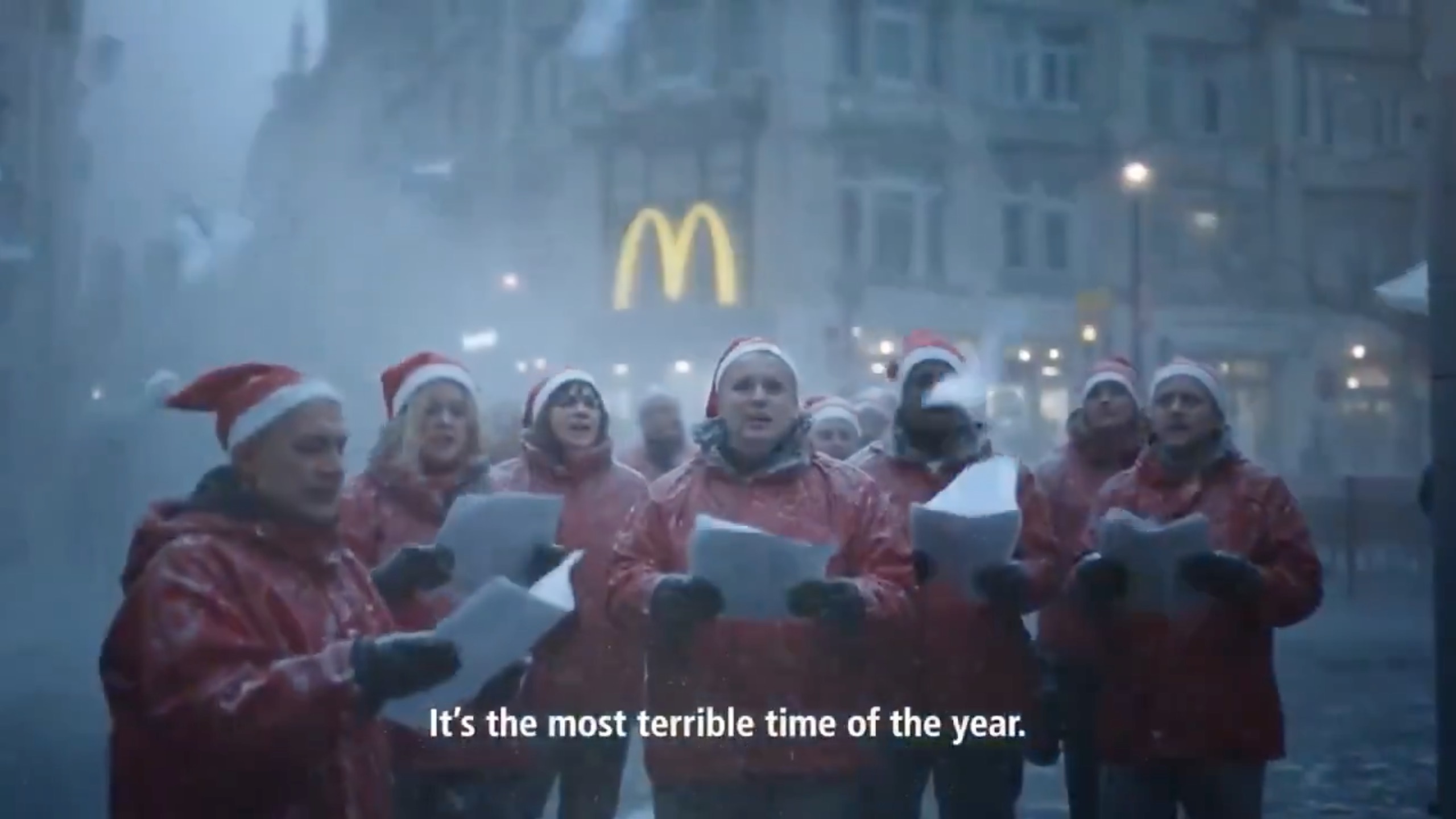 The commercial ends by telling viewers to “hide out in McDonald’s until January’s here.”