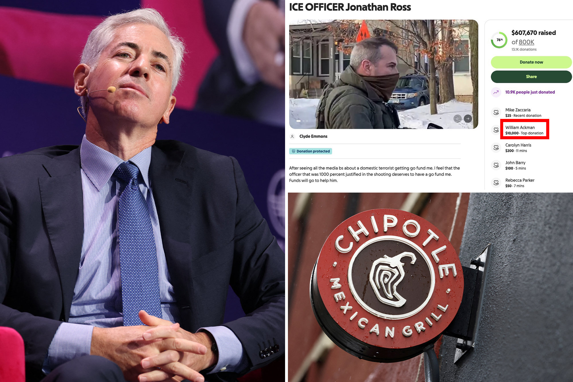 Chipotle distanced itself from billionaire hedge funder Bill Ackman after he said he donated $10,000 to a fundraiser for the ICE agent who fatally shot a Minneapolis protester — igniting online calls to boycott the fast-casual Mexican food chain in which his firm was once a major investor.