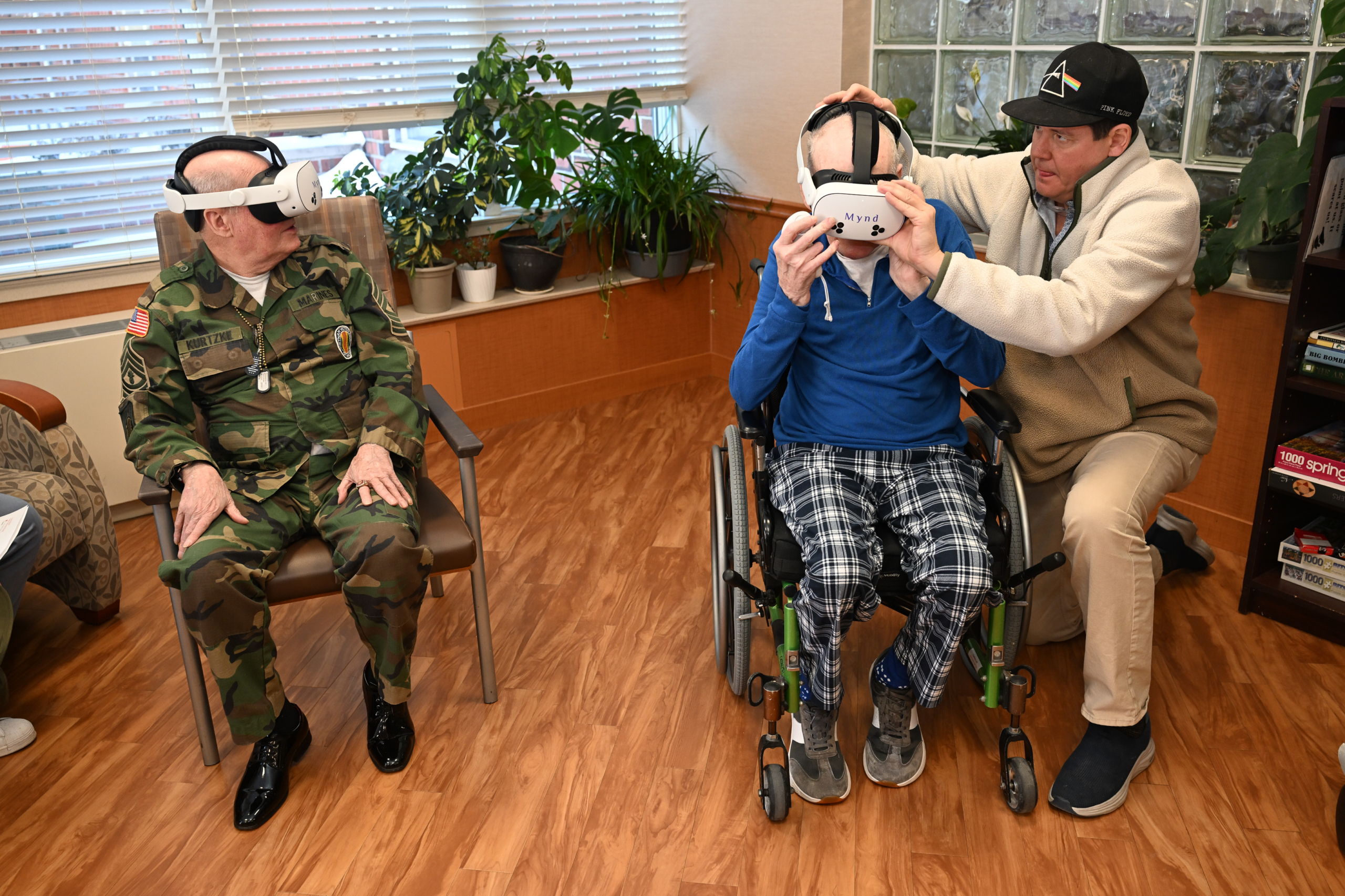 Residents at the Long Island State Veterans Home at Stony Brook University can have virtual experiences diving with sharks, catching butterflies, shooting archery arrows, racing NASCAR vehicles and watching Broadway shows or an Ole Miss college football game, too.