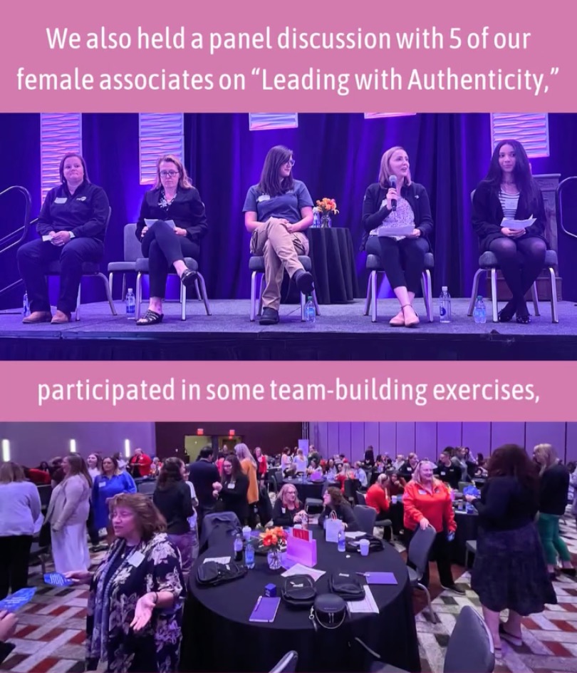 It was the company’s “first in-person Women’s Forum,” according to a social media post, and included speakers, team-building activities, food and drinks, and visits with service dogs.
